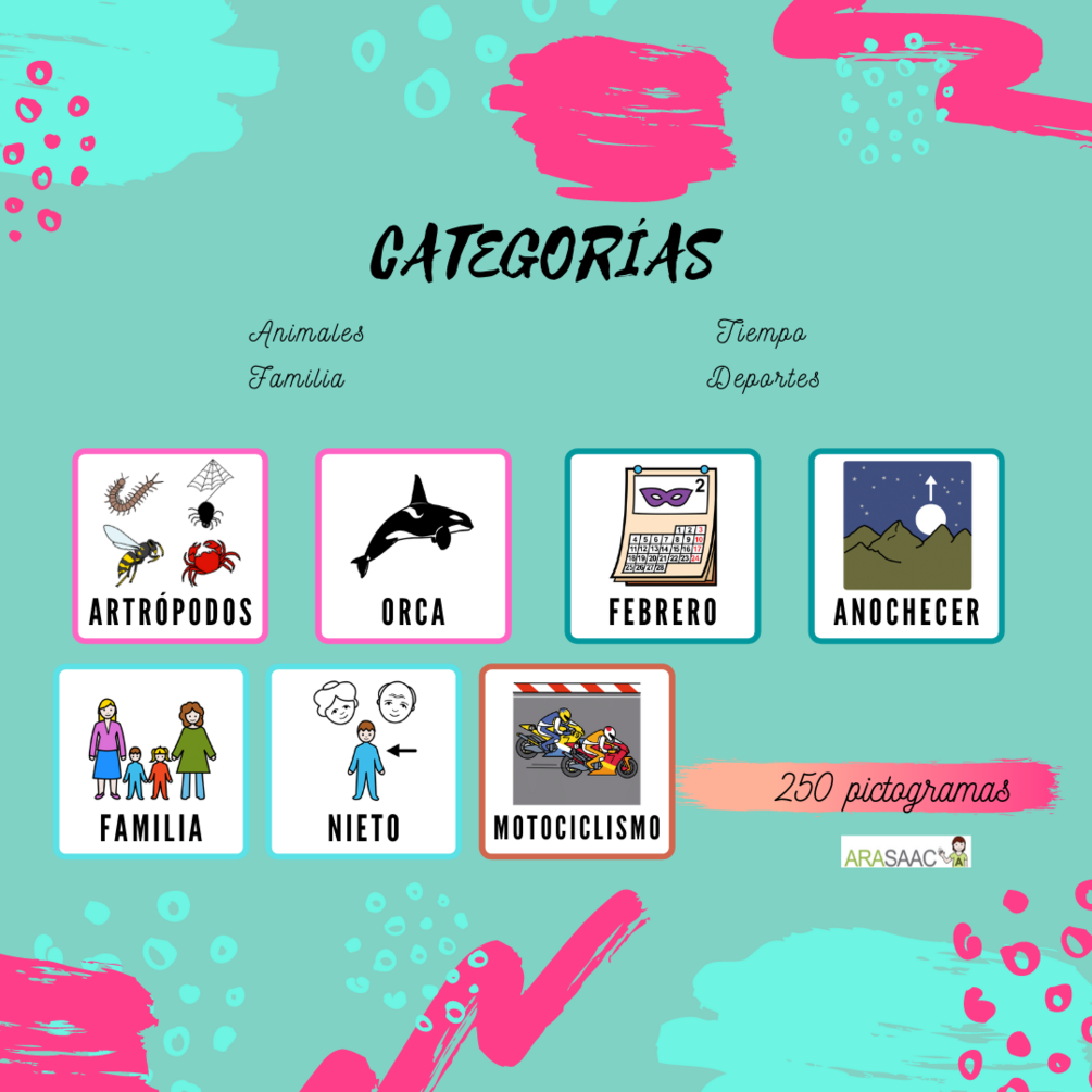 La 3º parte (250 pictogramas) consta de 4 categorías: Animales, Familia, Deportes y Tiempo.